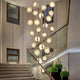 Designed as a modern minimalist chandelier, it is suitable for various settings, including staircases and entrance halls with differing ceiling heights. The fixture includes an adjustable chain, allowing for flexible height placement to suit specific installation requirements.