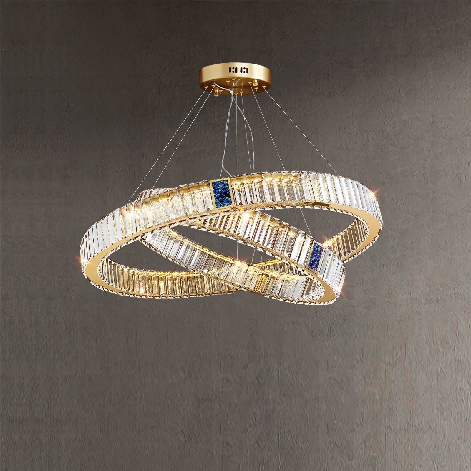 A crystal chandelier featuring a modern design, providing an elegant aesthetic. It delivers versatile lighting effects, creating an inviting ambiance. This fixture is suitable for living rooms and dining rooms.