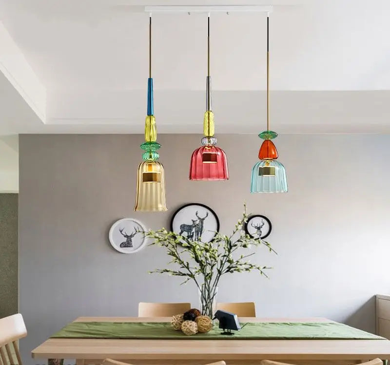 Modern Colorful Art Glass Pendant Light – Hand-Blown Glass & Copper Hanging Lamp with Adjustable Cord