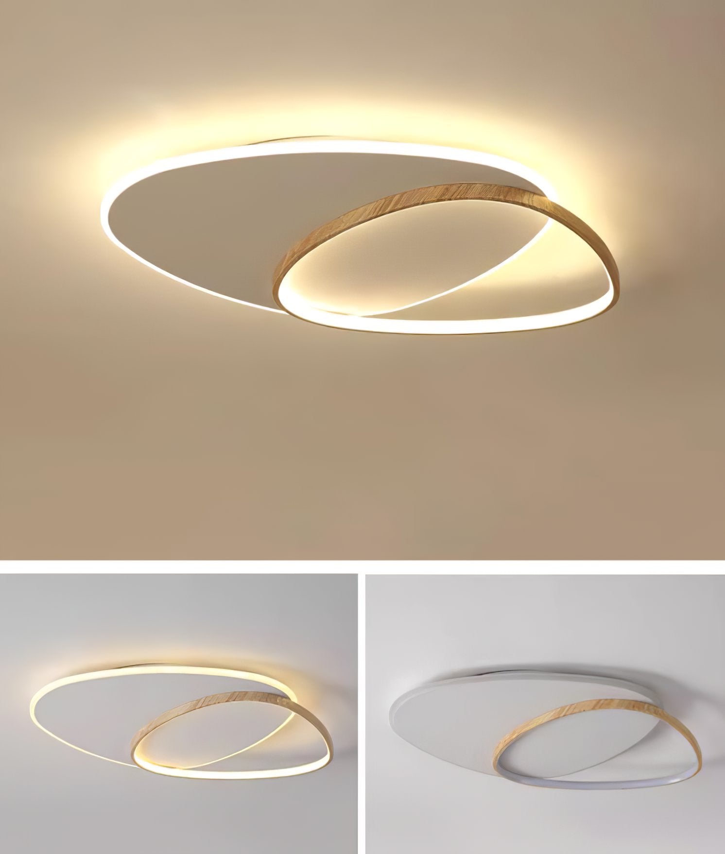 - Dia 59cm x W 46.5cm x H 6cm / ∅ 23.2″ x W 18.3″ x H 2.4″ / Wood Color+White / Triac Warm Dimming - $186.00