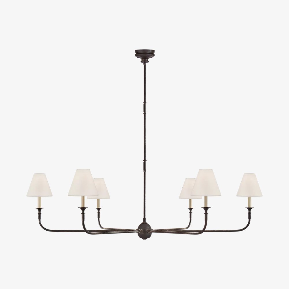 The Piaf Chandelier combines classic elegance with modern simplicity. Crafted from premium brass and featuring a clean white conical shade, its refined silhouette enhances any interior. This chandelier is suitable for contemporary and traditional spaces, making it an ideal choice for bedrooms, hallways, or living areas.